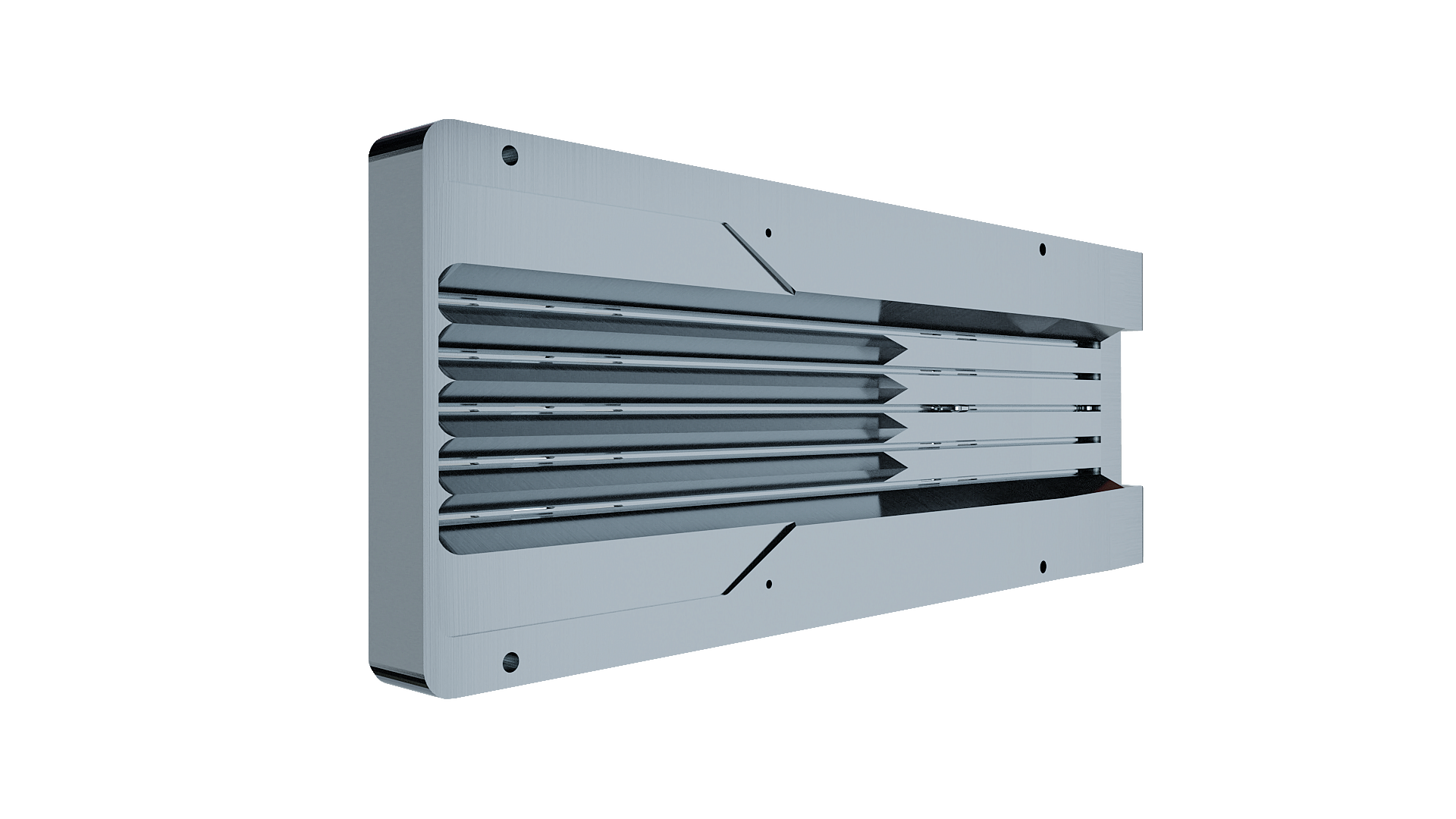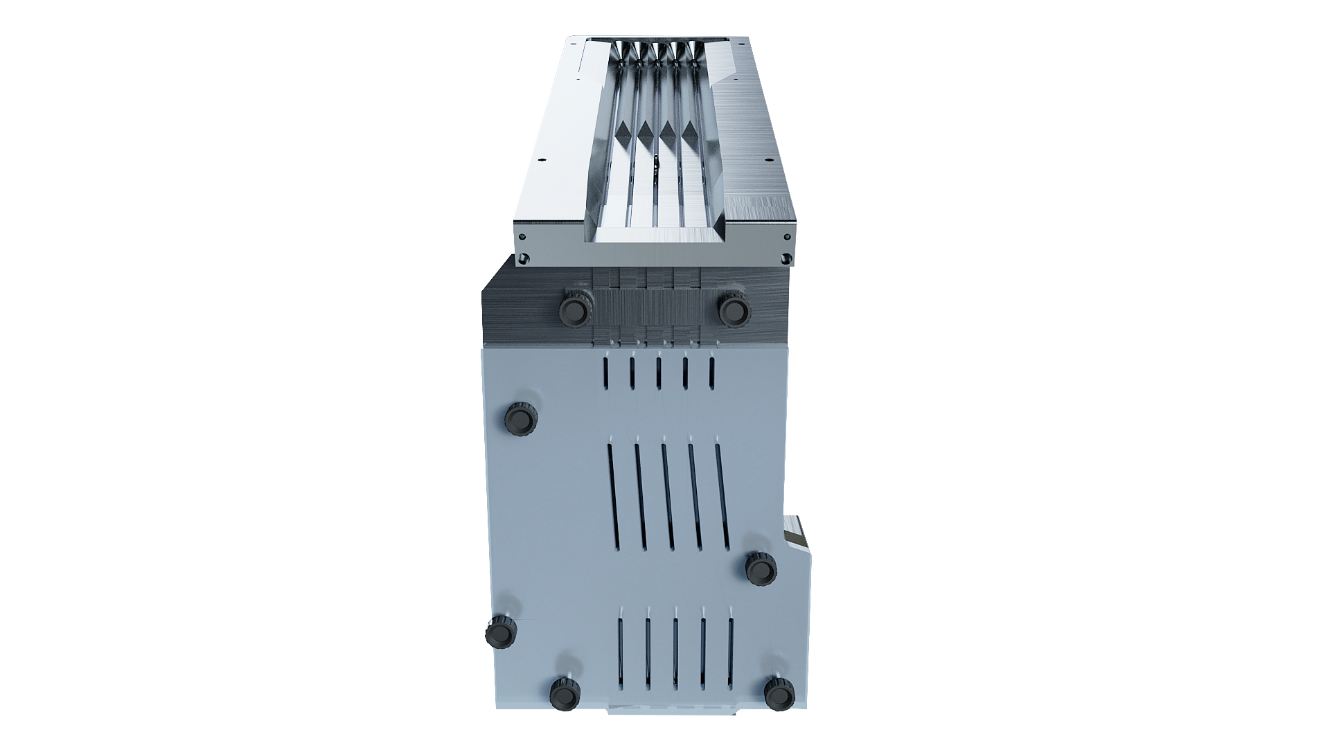 A guia de transporte faz parte dos componente de alta importância na máquina de blister. Tem a função de condução e depósito dos comprimidos dentro dos alvéolos, previamente formados pelas placas de formação.